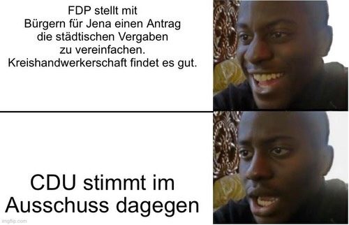 Bürokratieabbau wird ständig gefordert – solange er nichts verändert. Wir bringen zusammen mit den Bürgern für Jena einen Antrag ein, um Vergaben einfacher zu machen. Die Kreishandwerkerschaft sagt: sinnvoll. Die CDU? Stimmt im Ausschuss dagegen. Wer wirklich Wirtschaft stärken will, muss auch liefern – nicht nur reden. #Bürokratieabbau #Wirtschaft #FDP #Handwerk